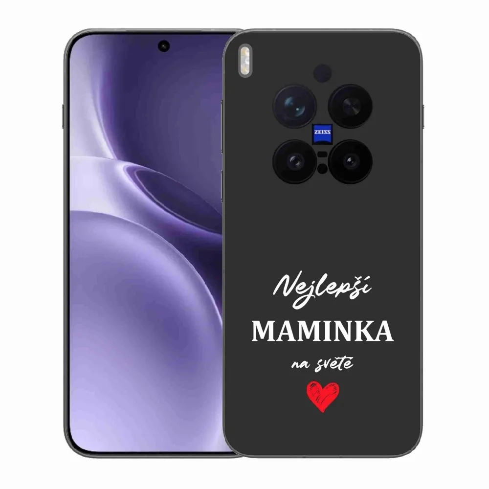 Pouzdro, na kterém je zajímavý text má název - nejlepší maminka 1 černé pozadí a je na Vivo X300 Pro poskytuje všechny výhody gelových krytů, a to v zajímavém designu.