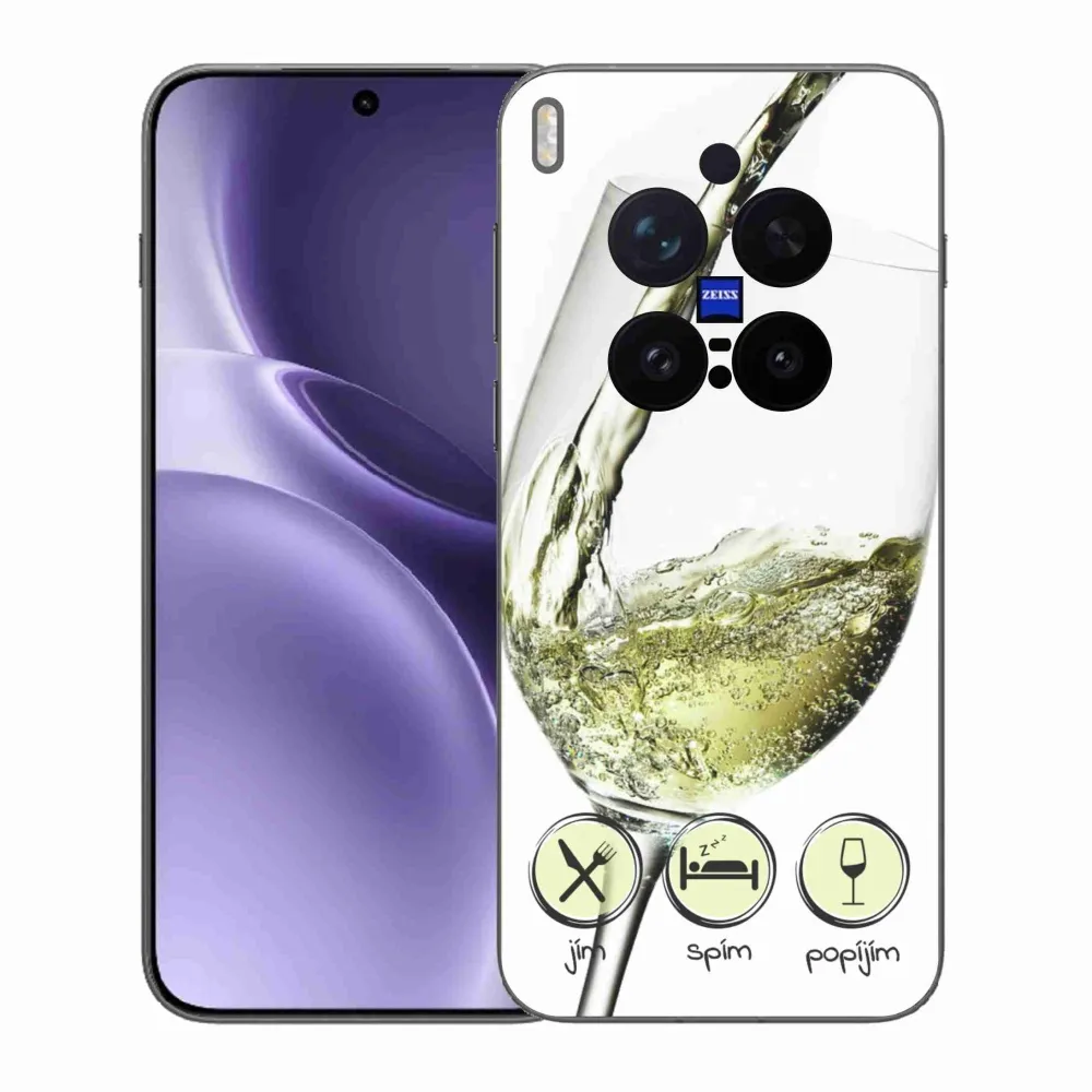 Pouzdro s motivem na Vivo X300 Pro - sklenička vína bílé poskytuje všechny výhody gelových obalů, a to v zajímavém designu.