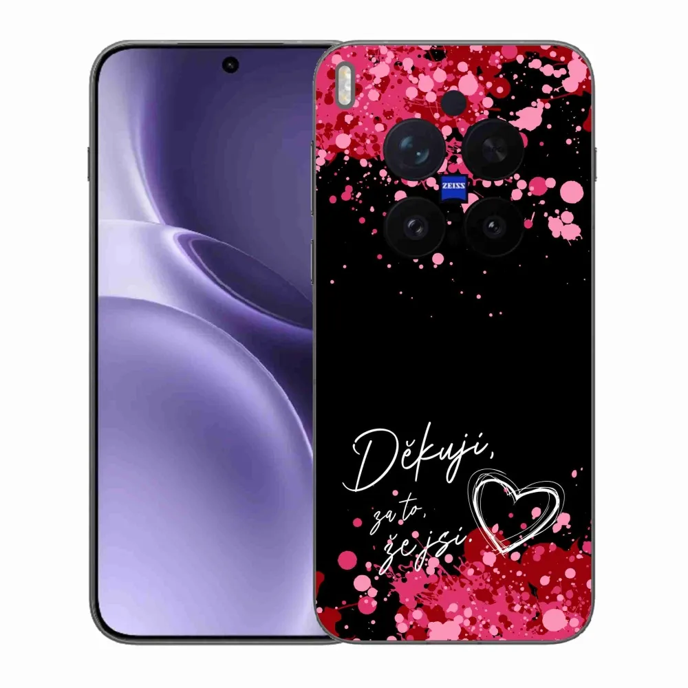 Pružný gelový obal mmCase s obrázkem na Vivo X300 Pro - zamilovaný text 2 černé pozadí