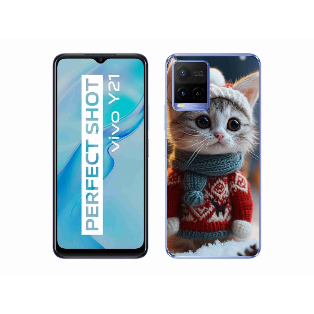 Kočičí pouzdro na Vivo Y21/Y21s/Y33s - kotě ve svetru poskytuje všechny výhody gelových krytů, a to v zajímavém designu.