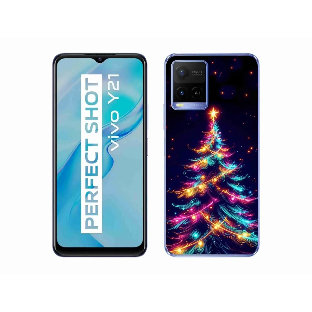 Vánoční pouzdro na Vivo Y21/Y21s/Y33s - neonový vánoční stromek poskytuje všechny výhody gelových obalů, a to v zajímavém designu.