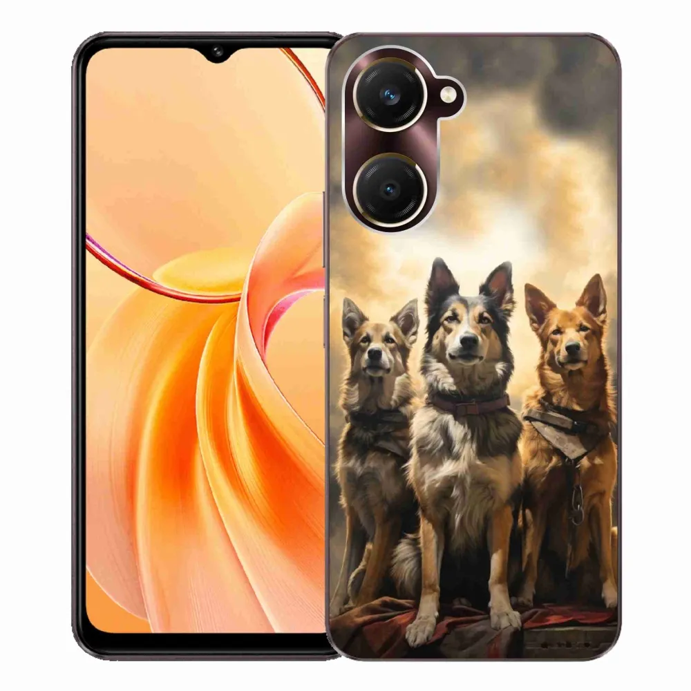 Psí pouzdro na Vivo Y28s 5G - tři psi poskytuje všechny výhody gelových krytů, a to v zajímavém designu.