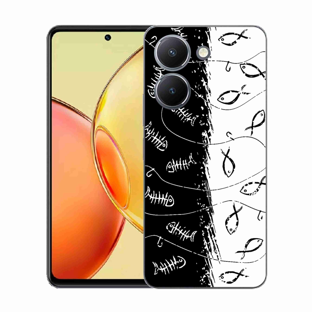 Pouzdro pro rybáře na Vivo Y36 - kostry a rybky poskytuje všechny výhody gelových krytů, a to v zajímavém designu.