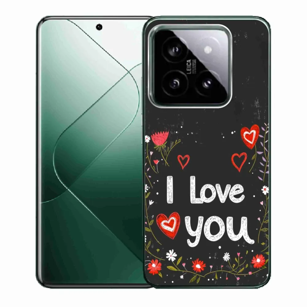 Pouzdro na Xiaomi 14 - I love you černé pozadí poskytuje všechny výhody gelových obalů, a to v zajímavém designu.