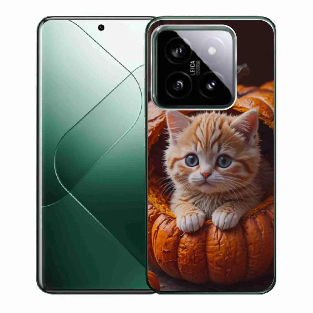 Kočičí pouzdro na Xiaomi 14 - kotě a dýně 2 poskytuje všechny výhody gelových obalů, a to v zajímavém designu.
