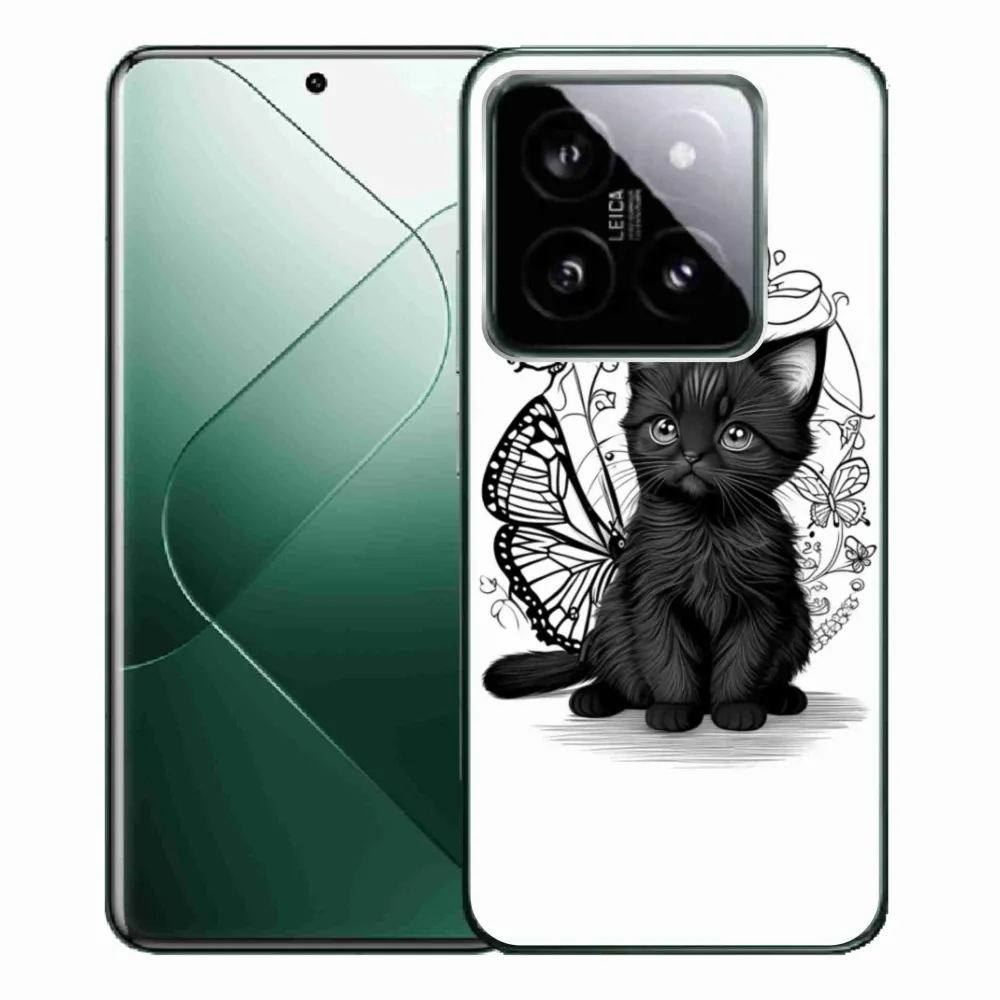 Pružný gelový obal mmCase s obrázkem na Xiaomi 14 Pro - černé kotě