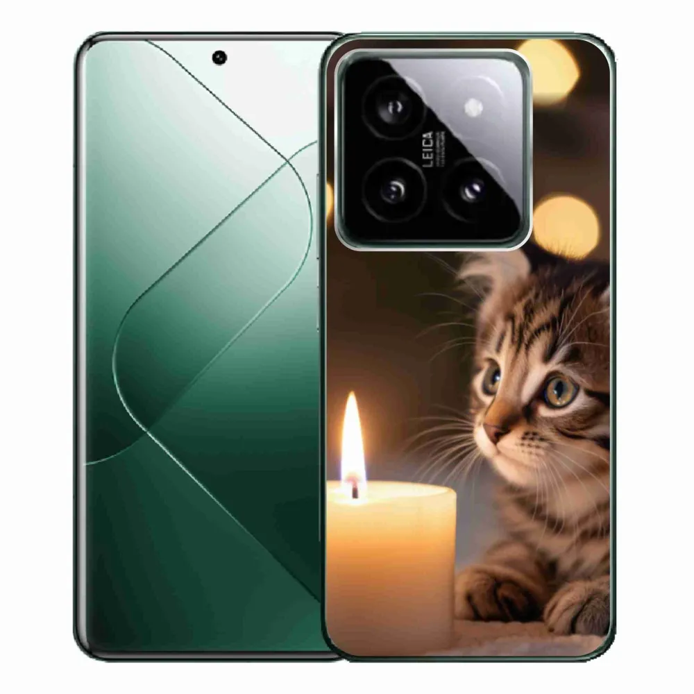 Pružný gelový obal mmCase s obrázkem na Xiaomi 14 Pro - kotě a svíčka