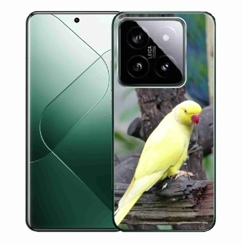 Zvířecí pouzdro na Xiaomi 14 Pro - papoušek alexandr žlutý poskytuje všechny výhody gelových obalů, a to v zajímavém designu.