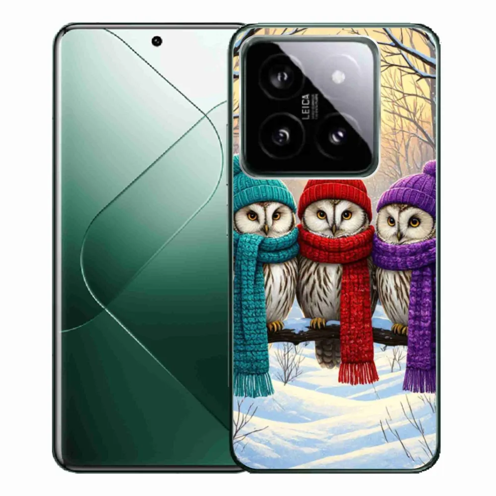 Vánoční pouzdro na Xiaomi 14 Pro - soví přátelé poskytuje všechny výhody gelových obalů, a to v zajímavém designu.