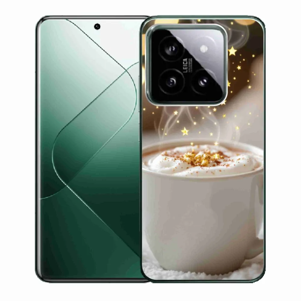 Vánoční pouzdro na Xiaomi 14 - vánoční horký nápoj poskytuje všechny výhody gelových obalů, a to v zajímavém designu.