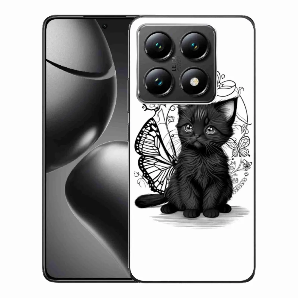 Kočičí pouzdro na Xiaomi 14T - černé kotě poskytuje všechny výhody gelových obalů, a to v zajímavém designu.