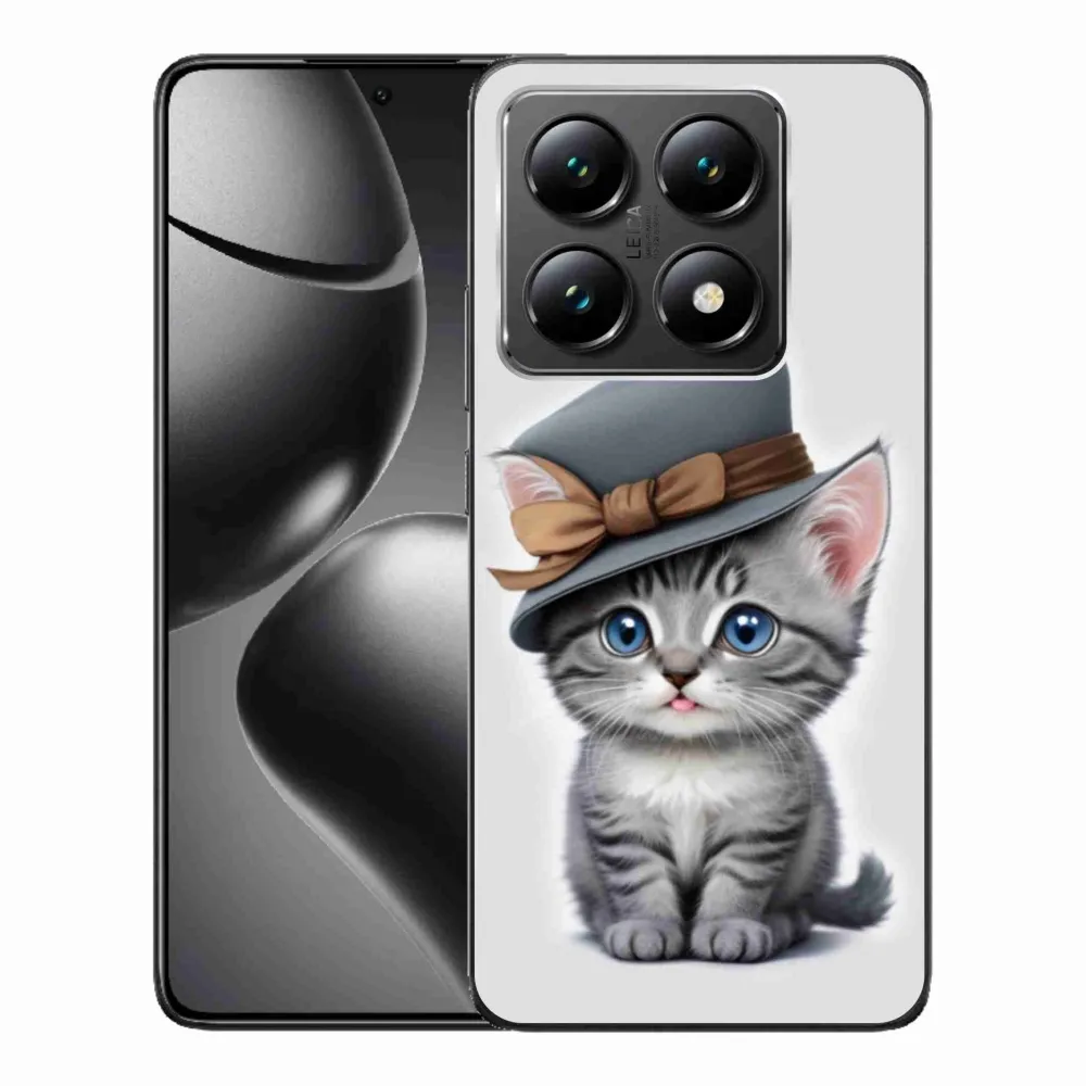 Pružný gelový obal mmCase s obrázkem na Xiaomi 14T - kotě s kloboukem