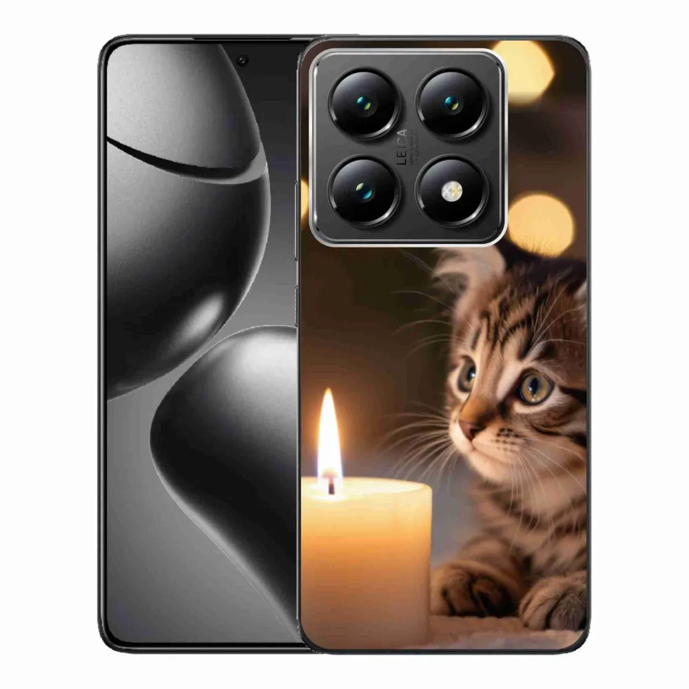 Pružný gelový obal mmCase s obrázkem na Xiaomi 14T Pro - kotě a svíčka