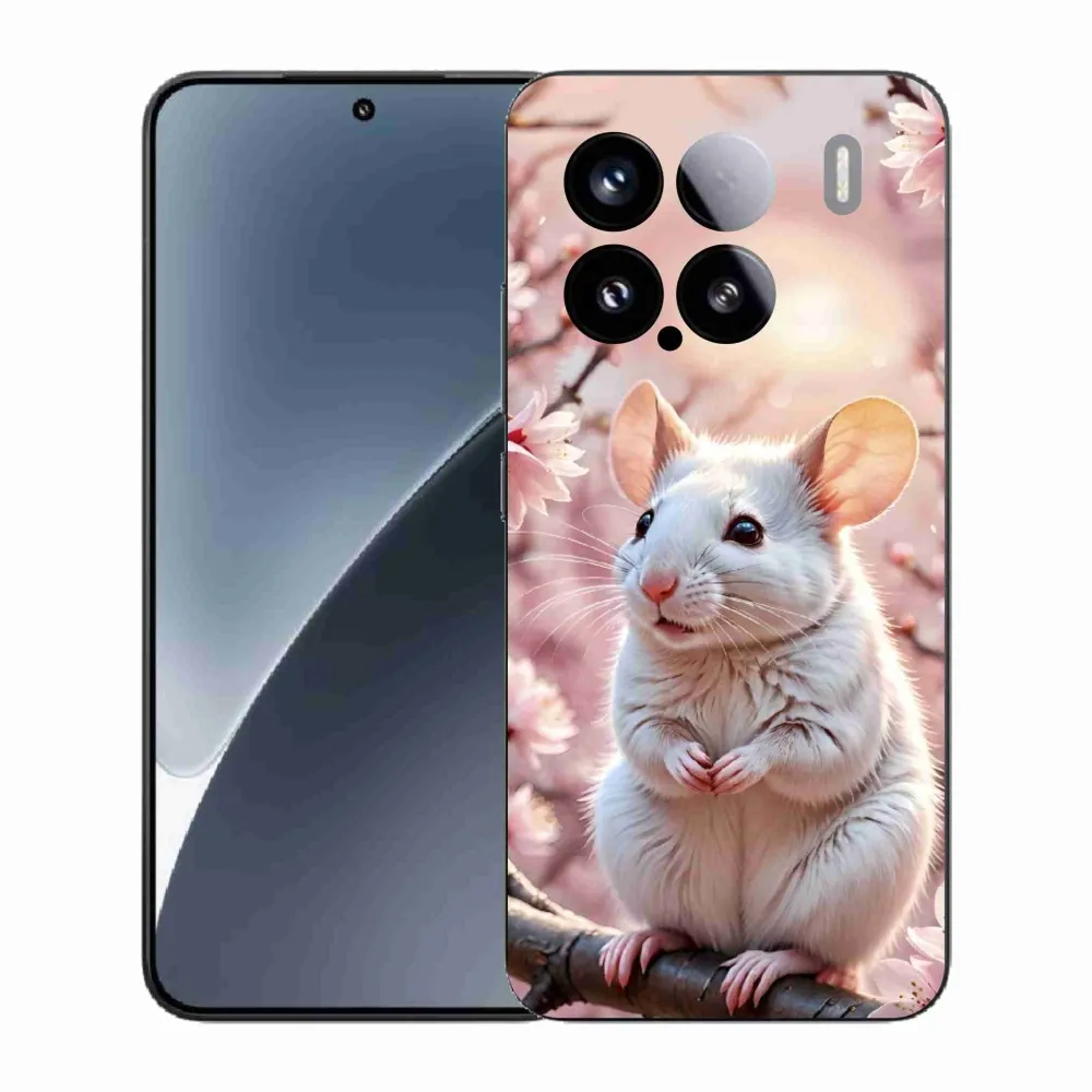 Zvířecí pouzdro na Xiaomi 15 - bílá myš na větvi poskytuje všechny výhody gelových obalů, a to v zajímavém designu.