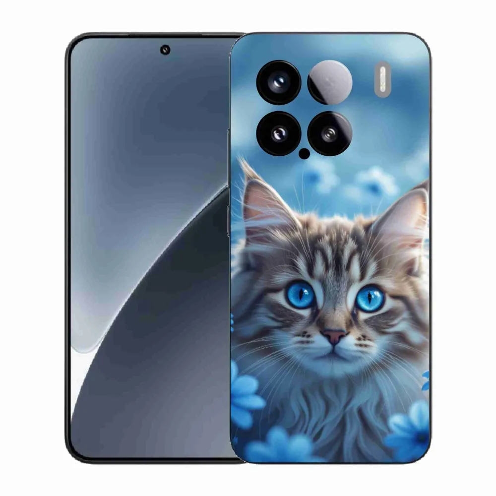 Pružný gelový obal mmCase s obrázkem na Xiaomi 15 - koťátko v modrých květech