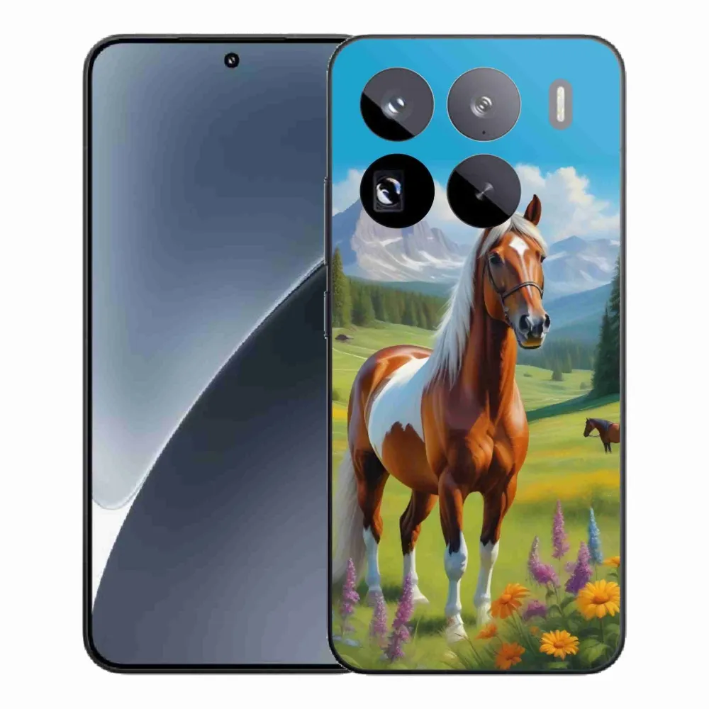 Pouzdro s motivem koně na Xiaomi 15 Pro - kůň na louce poskytuje všechny výhody gelových krytů, a to v zajímavém designu.