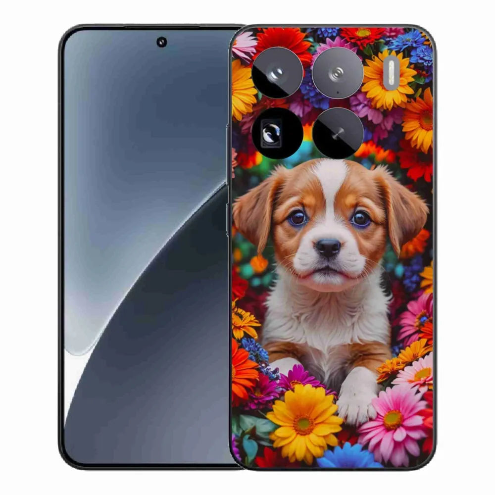 Psí pouzdro na Xiaomi 15 Pro - roztomilé štěně poskytuje všechny výhody gelových obalů, a to v zajímavém designu.
