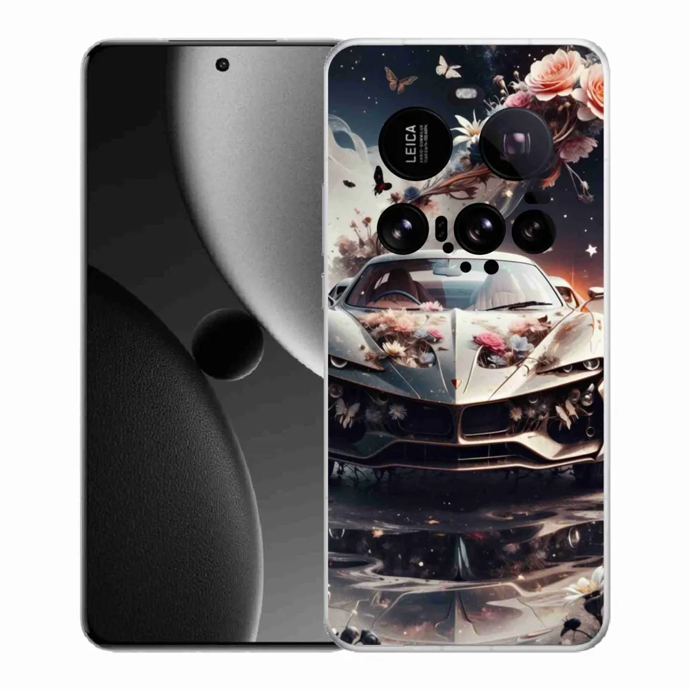 Pouzdro na Xiaomi 15 Ultra - květinový sportovní vůz poskytuje všechny výhody gelových obalů, a to v zajímavém designu.