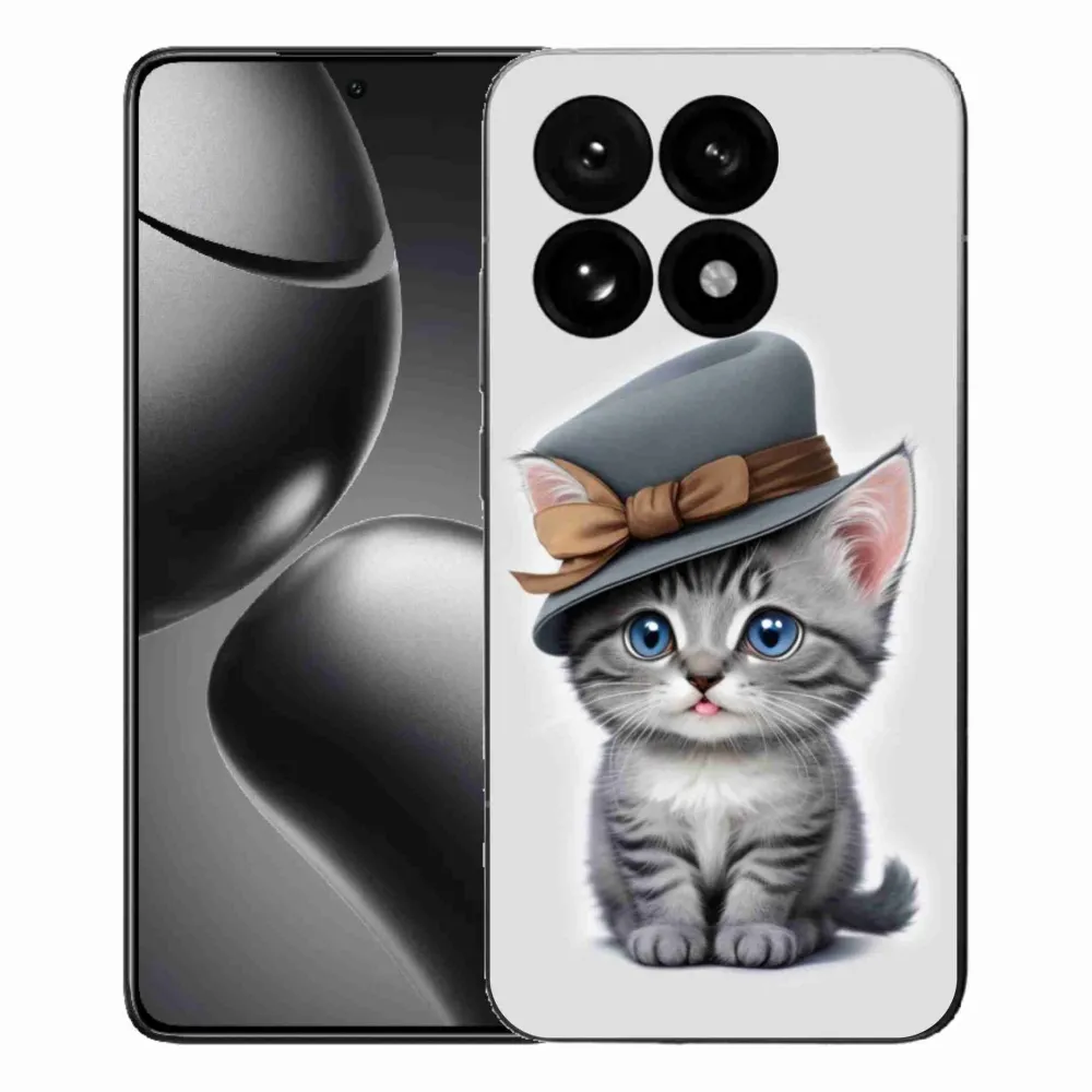 Kočičí pouzdro na Xiaomi 15T - kotě s kloboukem poskytuje všechny výhody gelových obalů, a to v zajímavém designu.