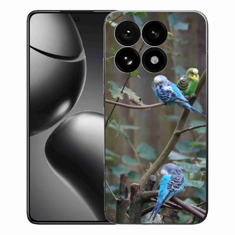 Ptačí pouzdro na Xiaomi 15T - papoušci na větvi poskytuje všechny výhody gelových obalů, a to v zajímavém designu.