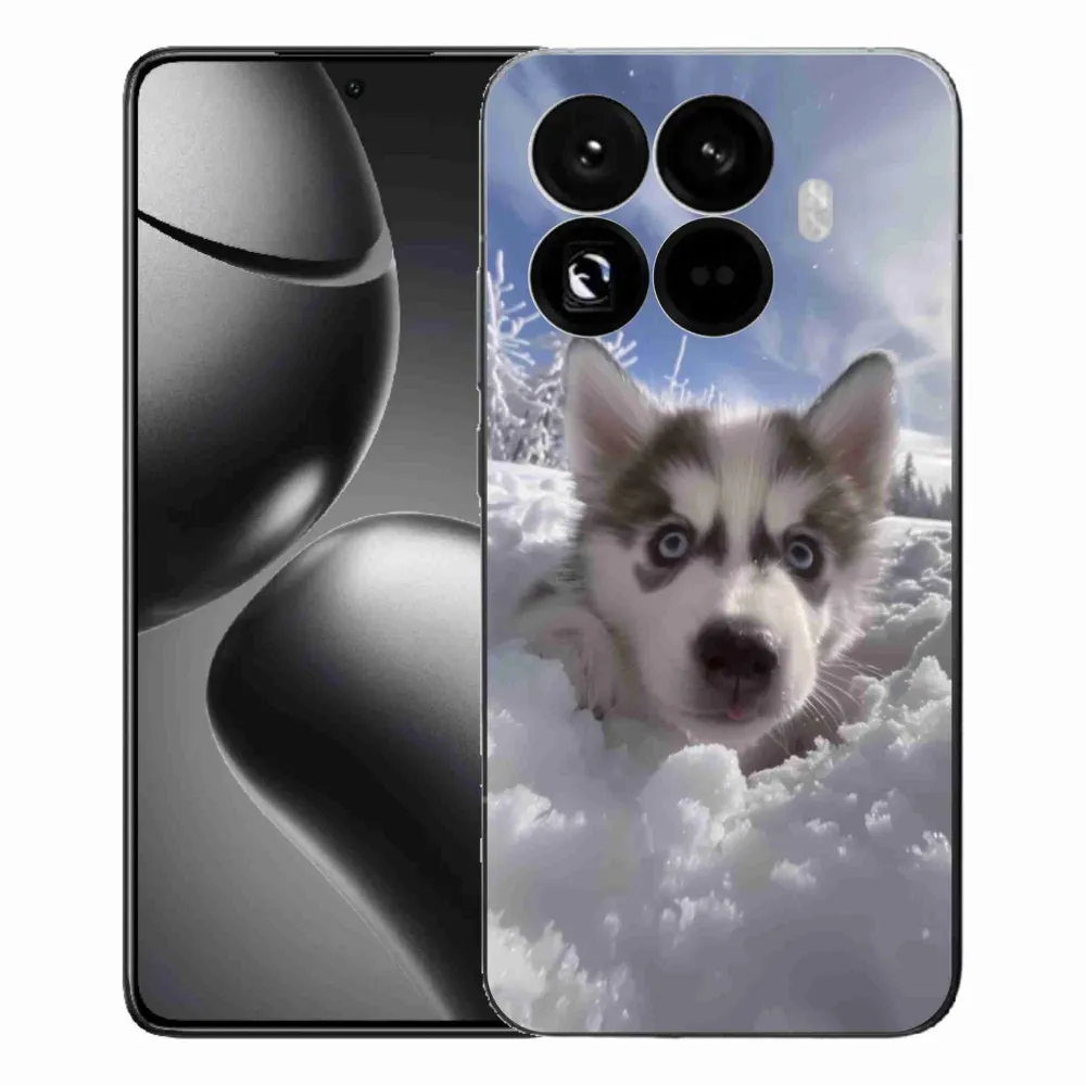 Psí pouzdro na Xiaomi 15T Pro - husky ve sněhu poskytuje všechny výhody gelových obalů, a to v zajímavém designu.