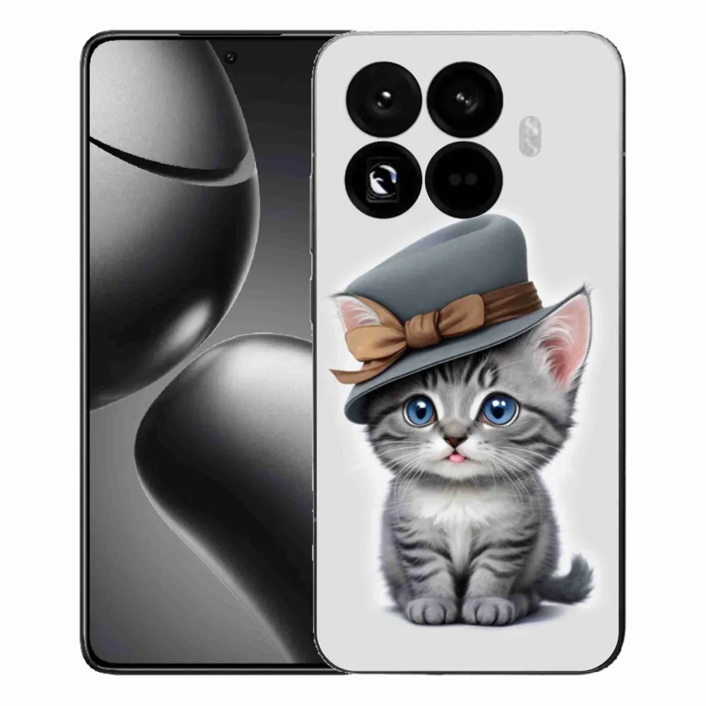 Pružný gelový obal mmCase s obrázkem na Xiaomi 15T Pro - kotě s kloboukem