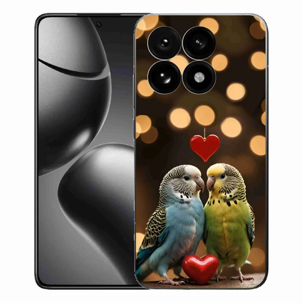 Ptačí pouzdro na Xiaomi 15T - zamilovaní papoušci poskytuje všechny výhody gelových obalů, a to v zajímavém designu.