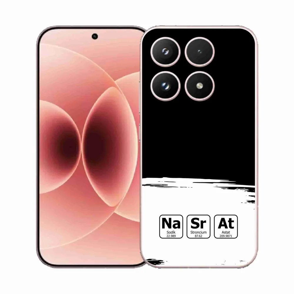 Pouzdro, na kterém je zajímavý text má název - chemické prvky bíločerné pozadí a je na Xiaomi 17 poskytuje všechny výhody gelových krytů, a to v zajímavém designu.
