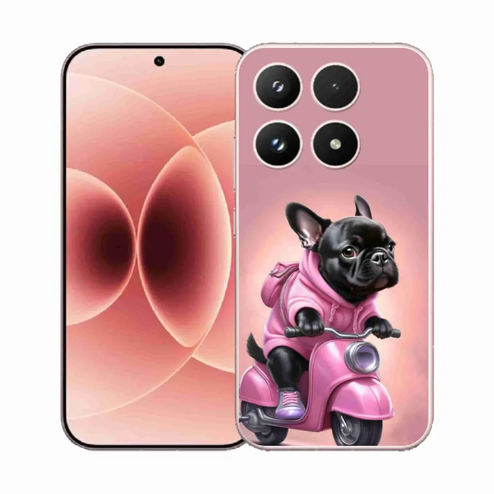 Psí pouzdro na Xiaomi 17 - francouzský buldoček na skútru poskytuje všechny výhody gelových obalů, a to v zajímavém designu.