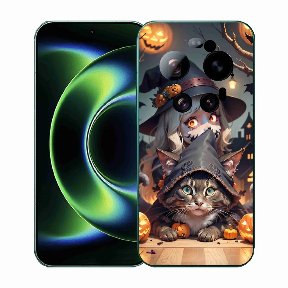 Kočičí pouzdro na Xiaomi 17 Ultra - čarodějnice s kočkou poskytuje všechny výhody gelových krytů, a to v zajímavém designu.