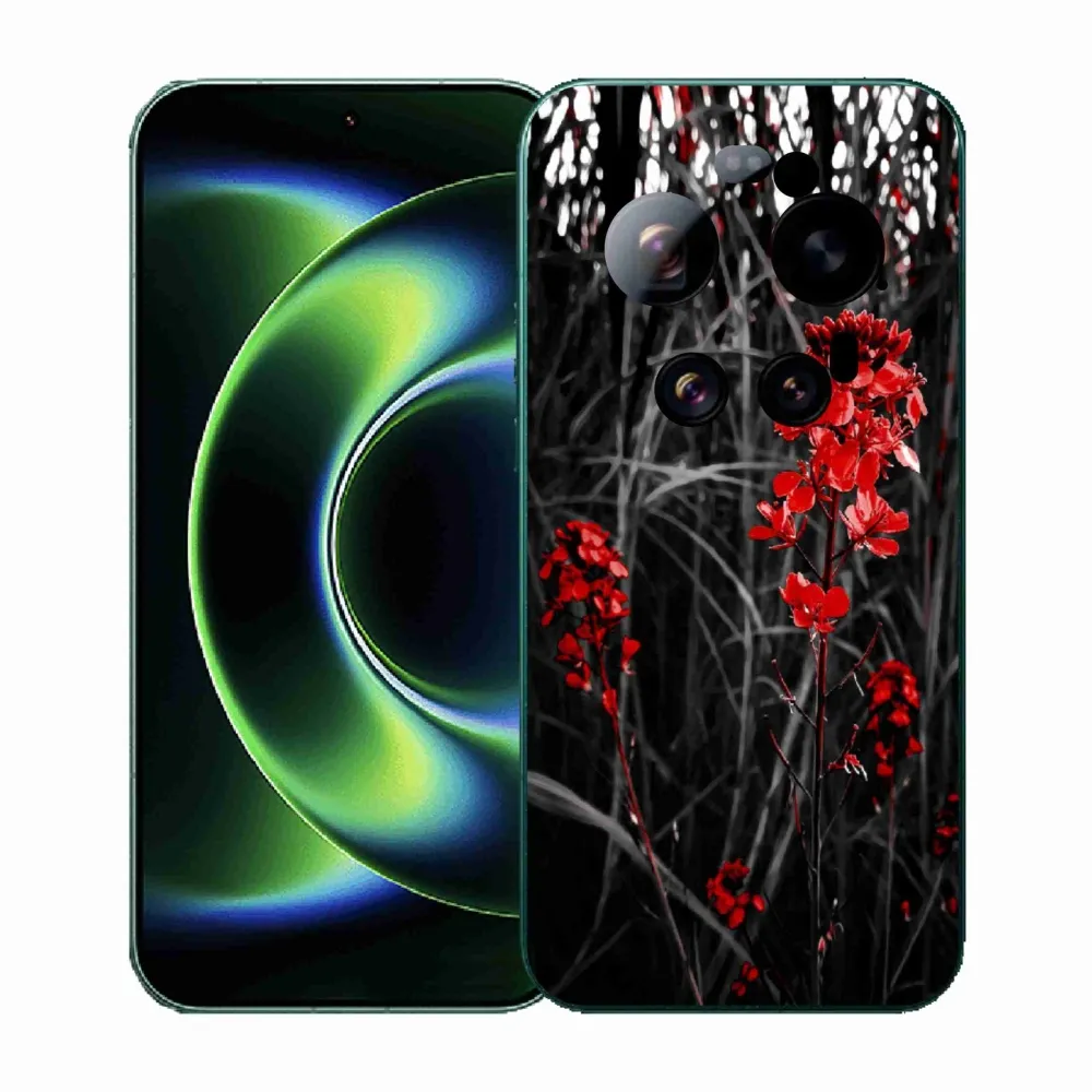 Květinové pouzdro na Xiaomi 17 Ultra - červená rostlina poskytuje všechny výhody gelových obalů, a to v zajímavém designu.