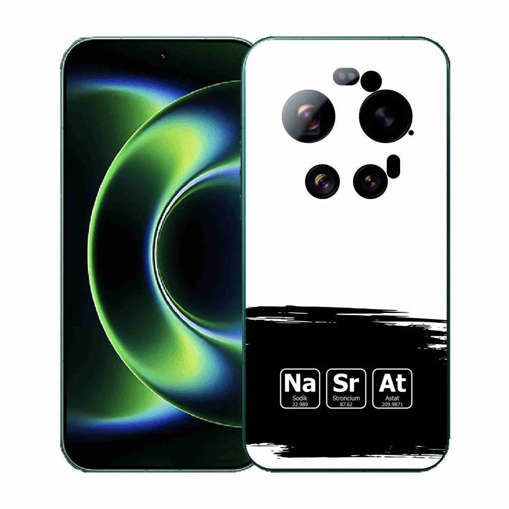 Pouzdro, na kterém je zajímavý text má název - chemické prvky černobílé pozadí a je na Xiaomi 17 Ultra poskytuje všechny výhody gelových krytů, a to v zajímavém designu.