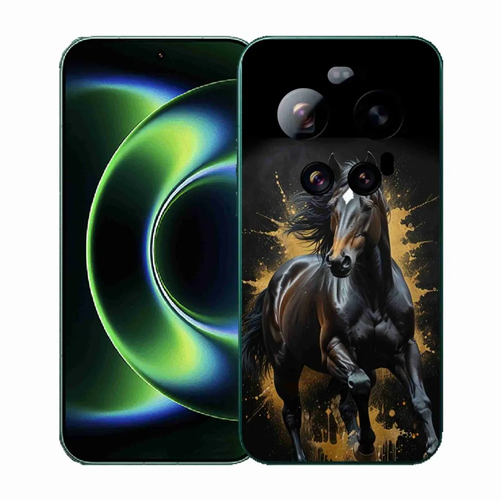 Pouzdro s motivem koně na Xiaomi 17 Ultra - elegantní černý hřebec poskytuje všechny výhody gelových krytů, a to v zajímavém designu.