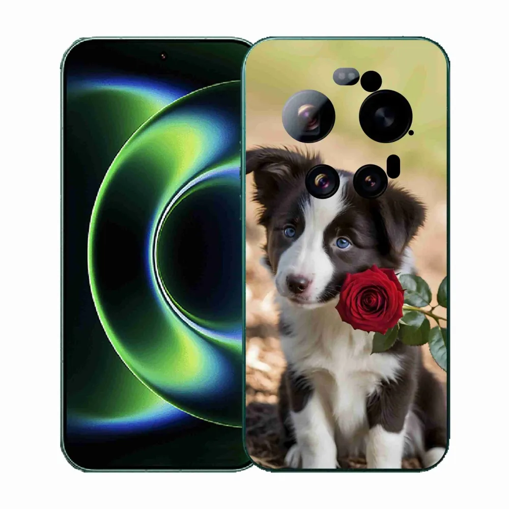 Psí pouzdro na Xiaomi 17 Ultra - roztomilá border kolie s růží poskytuje všechny výhody gelových obalů, a to v zajímavém designu.
