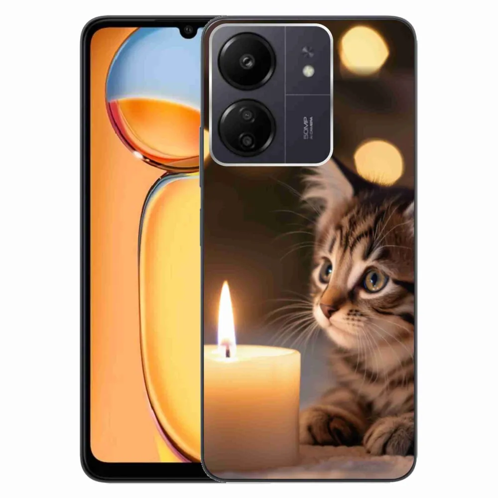 Pružný gelový obal mmCase s obrázkem na Xiaomi Poco C65/Redmi 13C - kotě a svíčka