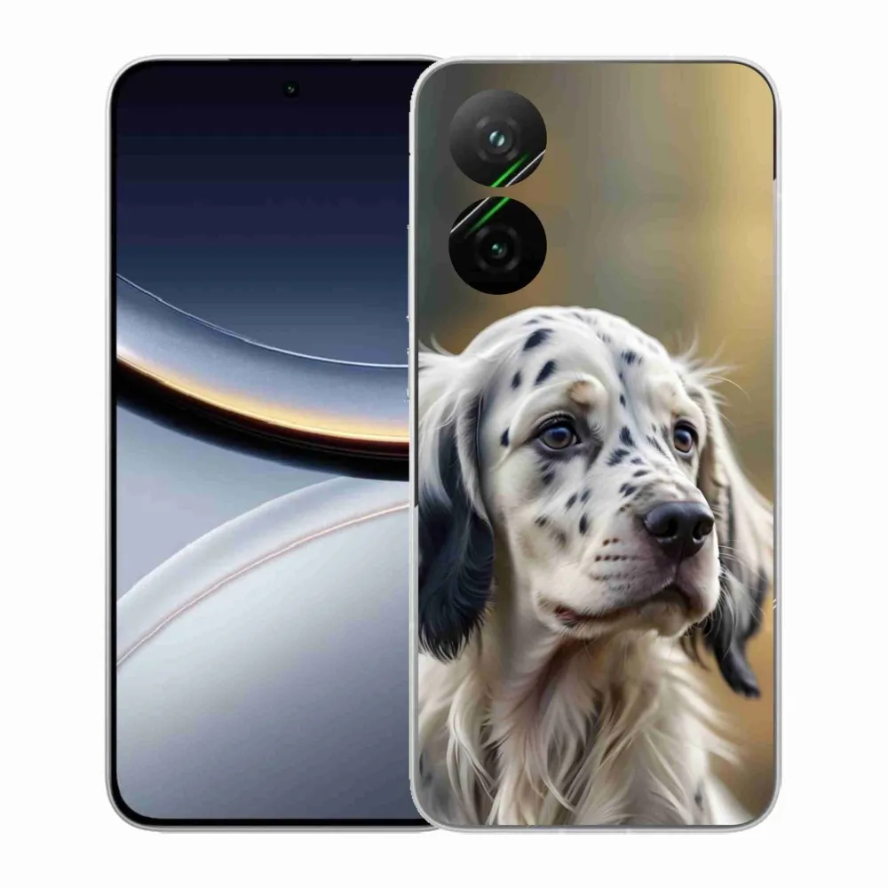 Psí pouzdro na Xiaomi Poco F7 5G - anglický setr poskytuje všechny výhody gelových obalů, a to v zajímavém designu.