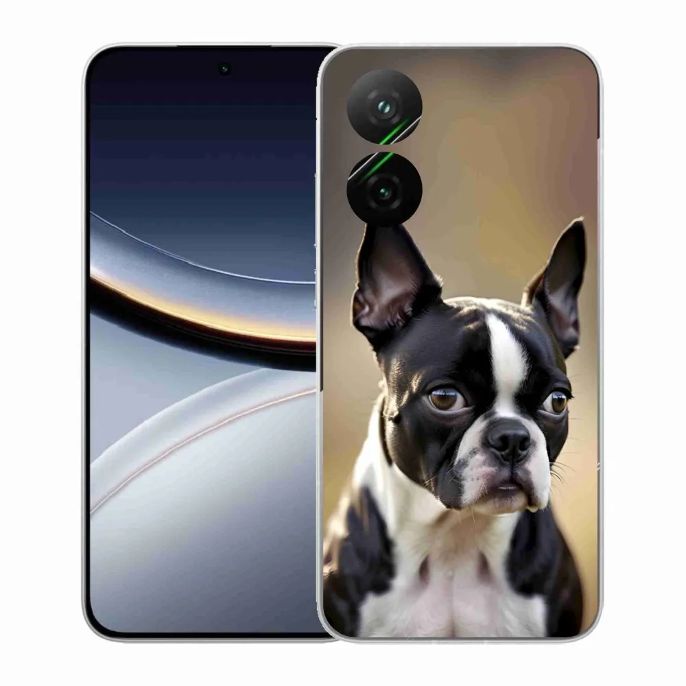 Psí pouzdro na Xiaomi Poco F7 5G - bostonský teriér poskytuje všechny výhody gelových obalů, a to v zajímavém designu.