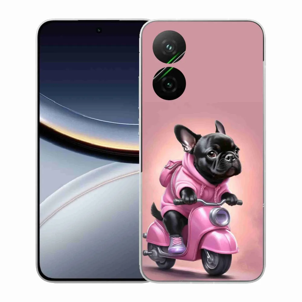 Psí pouzdro na Xiaomi Poco F7 5G - francouzský buldoček na skútru poskytuje všechny výhody gelových obalů, a to v zajímavém designu.
