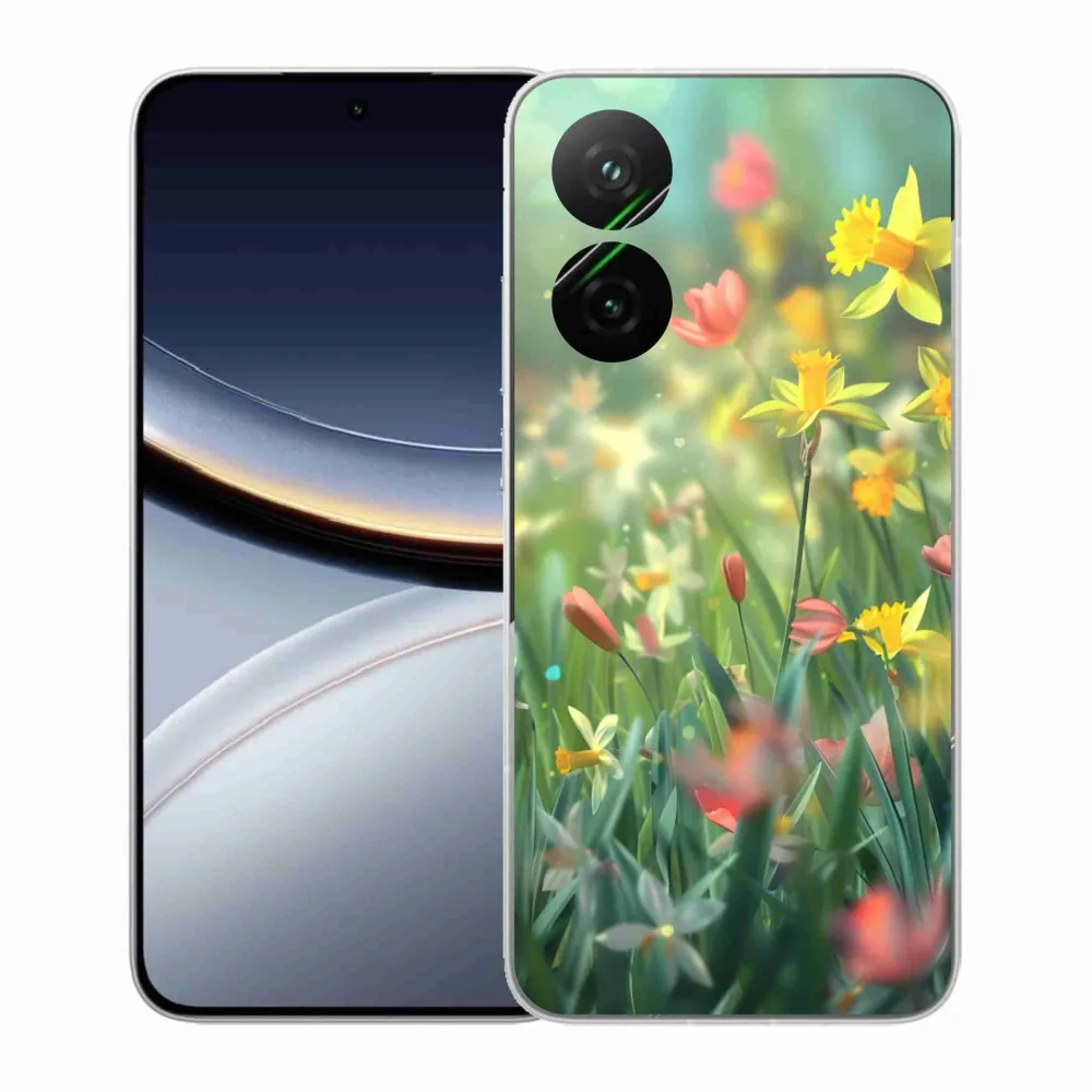 Květinové pouzdro na Xiaomi Poco F7 5G - jarní květy poskytuje všechny výhody gelových obalů, a to v zajímavém designu.