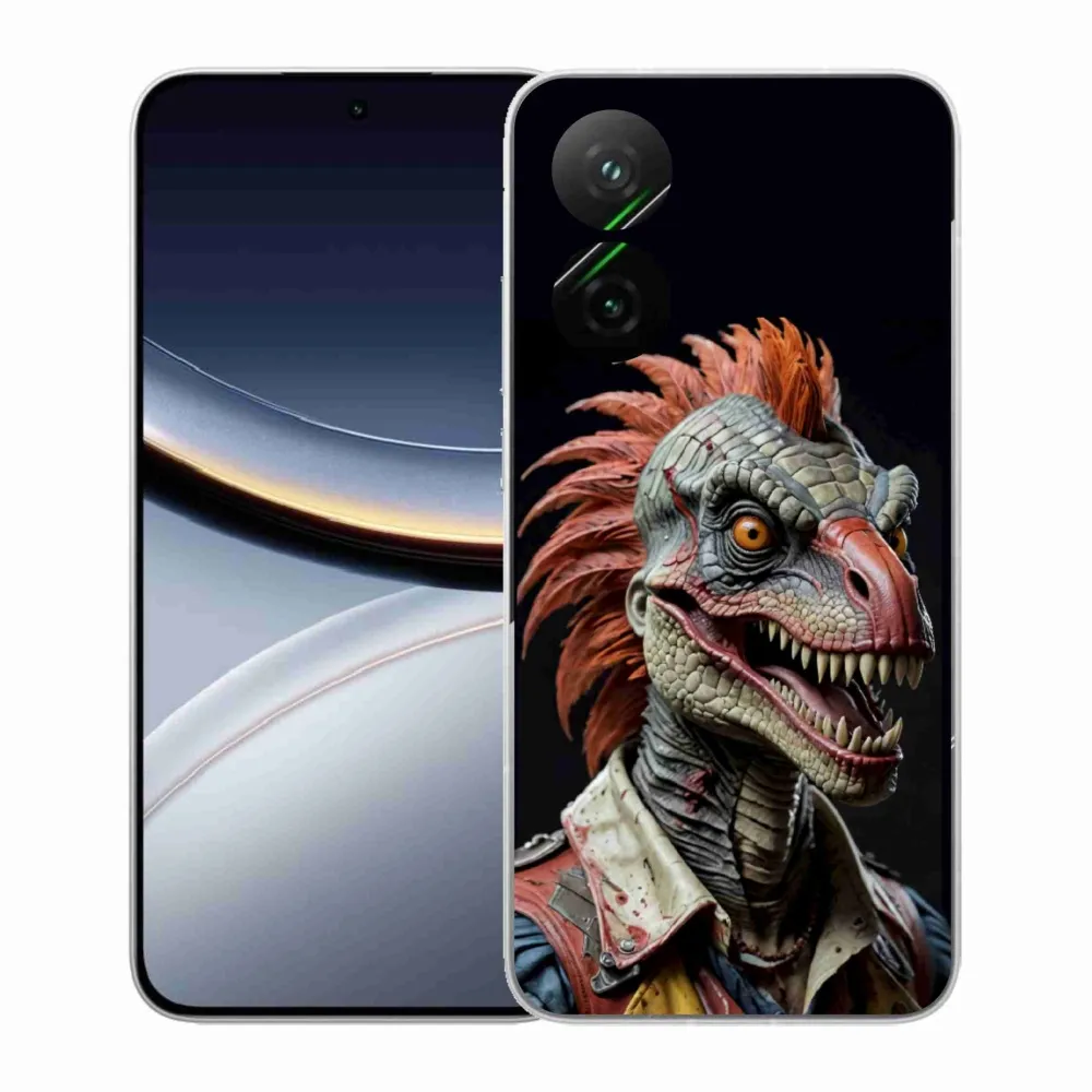 Pouzdro s motivem punk dinosaura na Xiaomi Poco F7 5G poskytuje všechny výhody gelových obalů, a to v zajímavém designu.