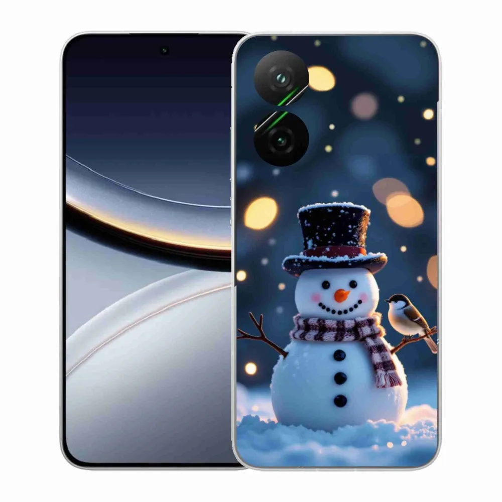 Vánoční pouzdro na Xiaomi Poco F7 5G - vánoční sněhulák poskytuje všechny výhody gelových obalů, a to v zajímavém designu.