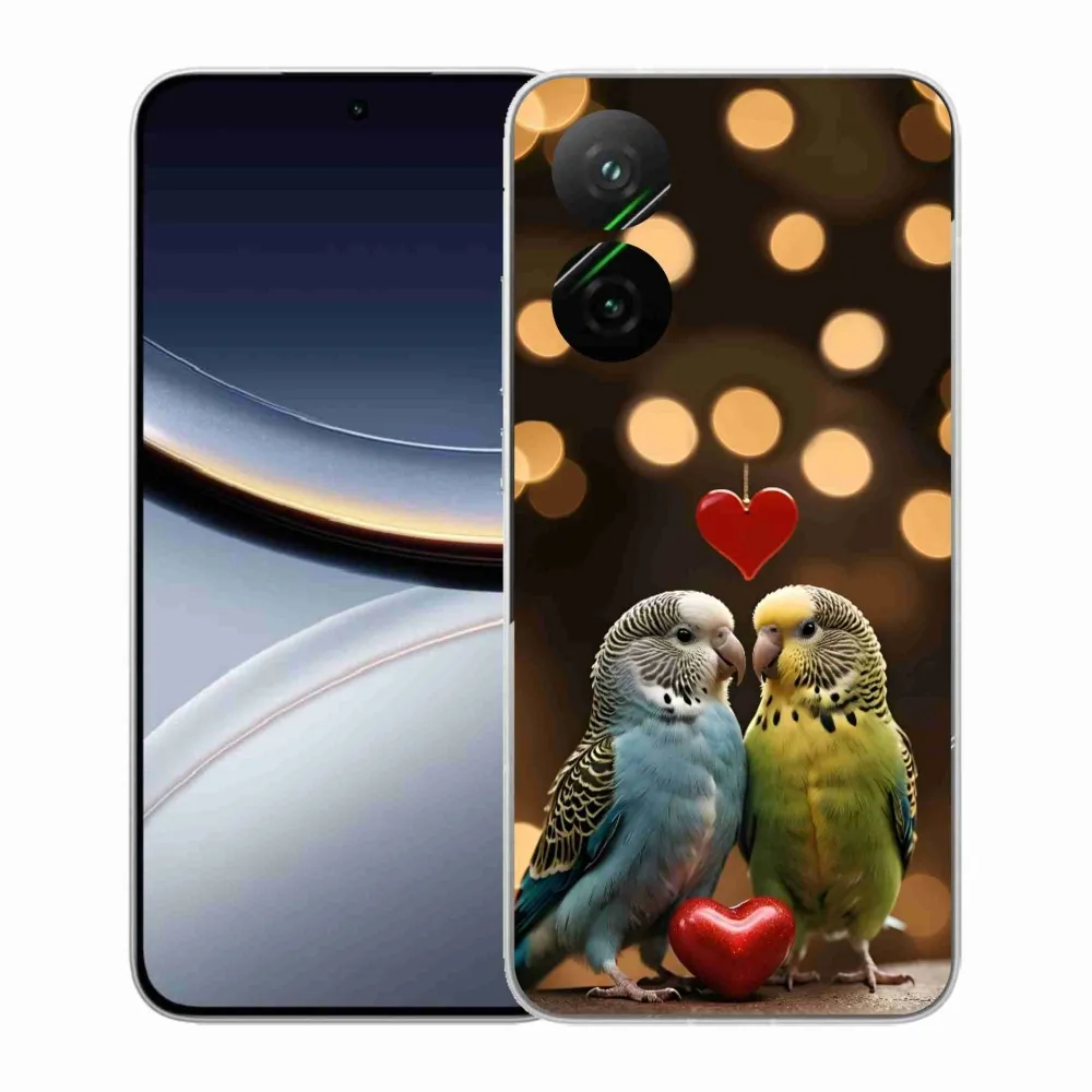 Ptačí pouzdro na Xiaomi Poco F7 5G - zamilovaní papoušci poskytuje všechny výhody gelových obalů, a to v zajímavém designu.