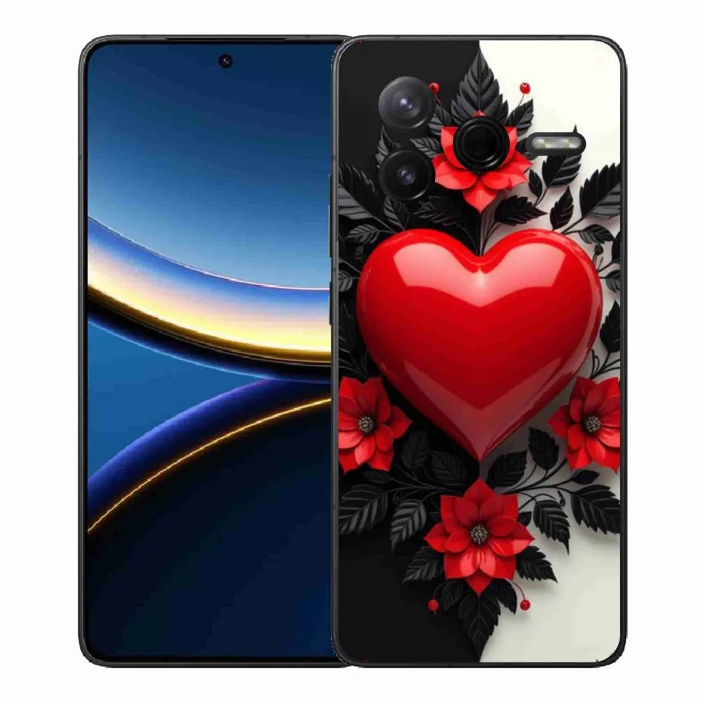 Pouzdro na Xiaomi Poco F7 Pro - červené srdce poskytuje všechny výhody gelových obalů, a to v zajímavém designu.