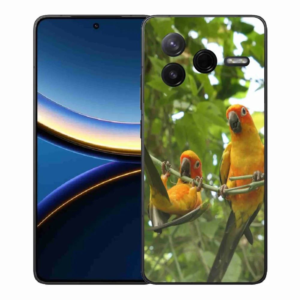 Zvířecí pouzdro na Xiaomi Poco F7 Pro - papoušci aratingy poskytuje všechny výhody gelových obalů, a to v zajímavém designu.