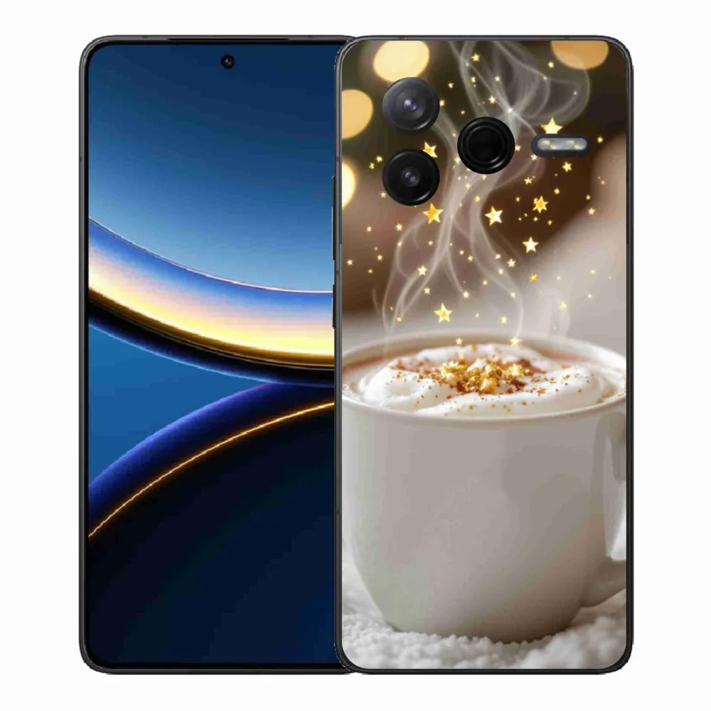 Vánoční pouzdro na Xiaomi Poco F7 Pro - vánoční horký nápoj poskytuje všechny výhody gelových obalů, a to v zajímavém designu.