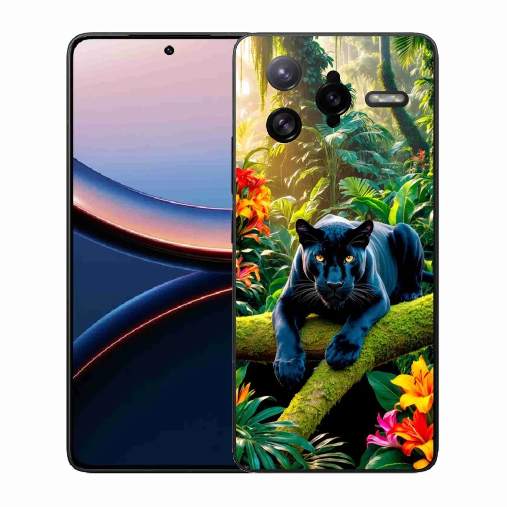 Zvířecí pouzdro na Xiaomi Poco F7 Ultra - černý panter v džungli poskytuje všechny výhody gelových obalů, a to v zajímavém designu.