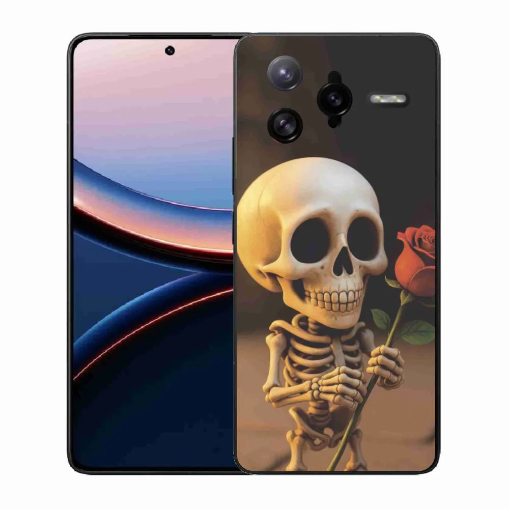 Pouzdro na Xiaomi Poco F7 Ultra - kostlivec s růží poskytuje všechny výhody gelových obalů, a to v zajímavém designu.