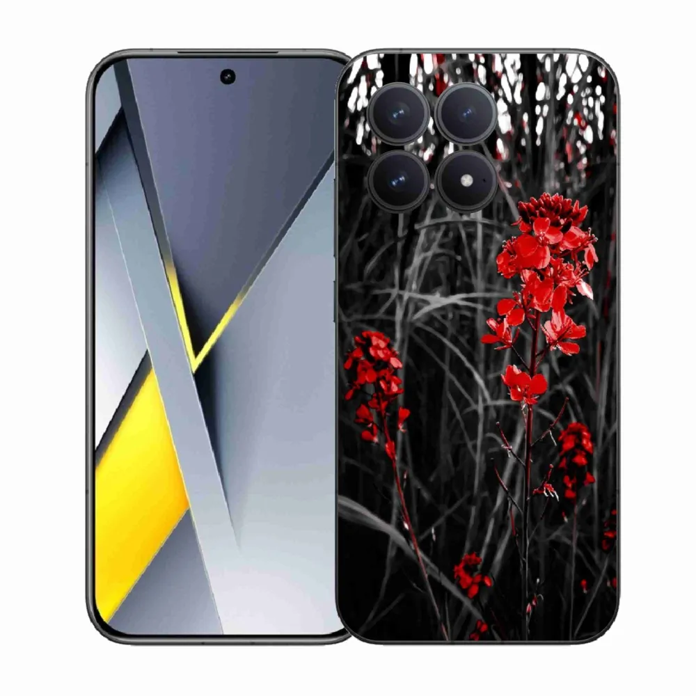Květinové pouzdro na Xiaomi Poco F8 Pro - červená rostlina poskytuje všechny výhody gelových obalů, a to v zajímavém designu.