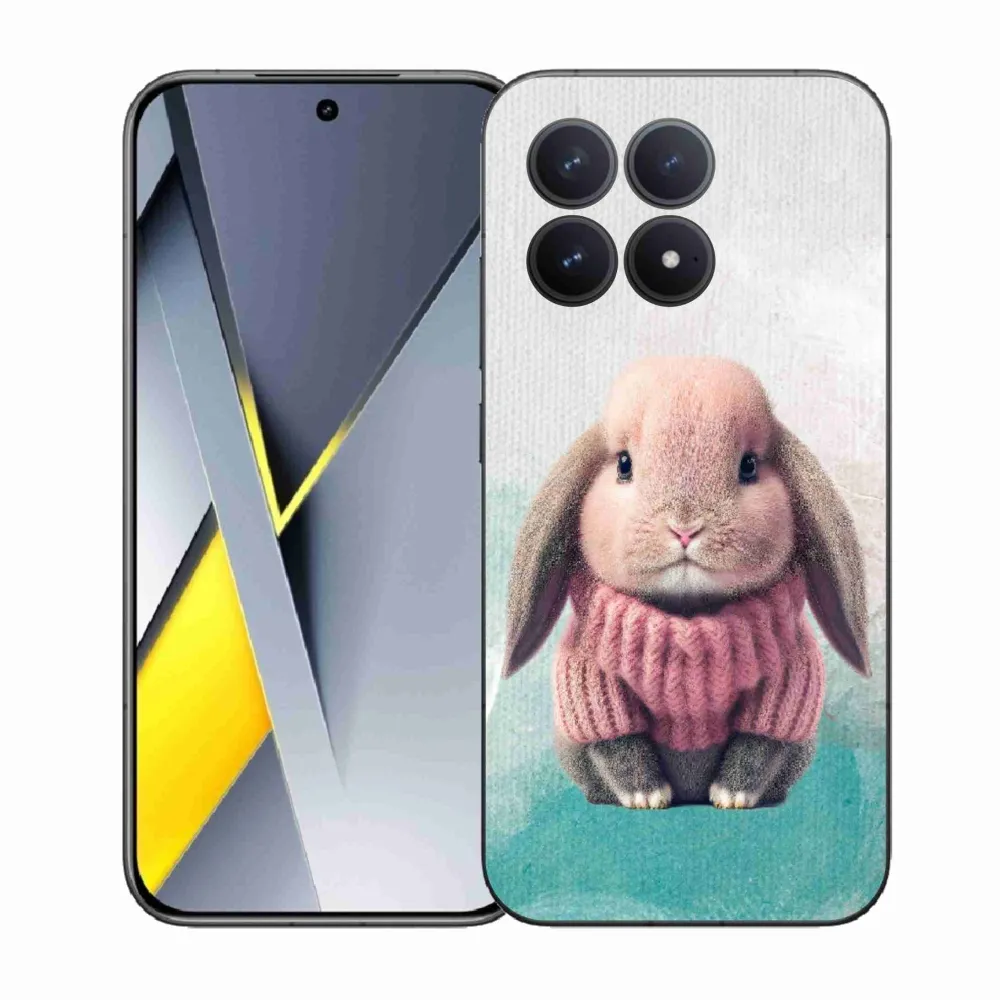 Zvířecí pouzdro na Xiaomi Poco F8 Pro - králíček ve svetru poskytuje všechny výhody gelových obalů, a to v zajímavém designu.