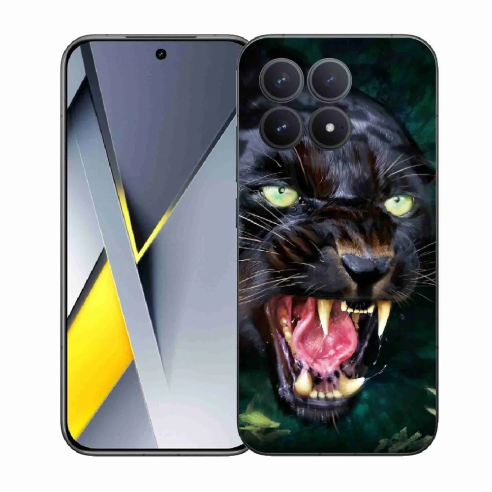 Pouzdro se šelmou na Xiaomi Poco F8 Pro - rozzuřený černý panter poskytuje všechny výhody gelových krytů, a to v zajímavém designu.